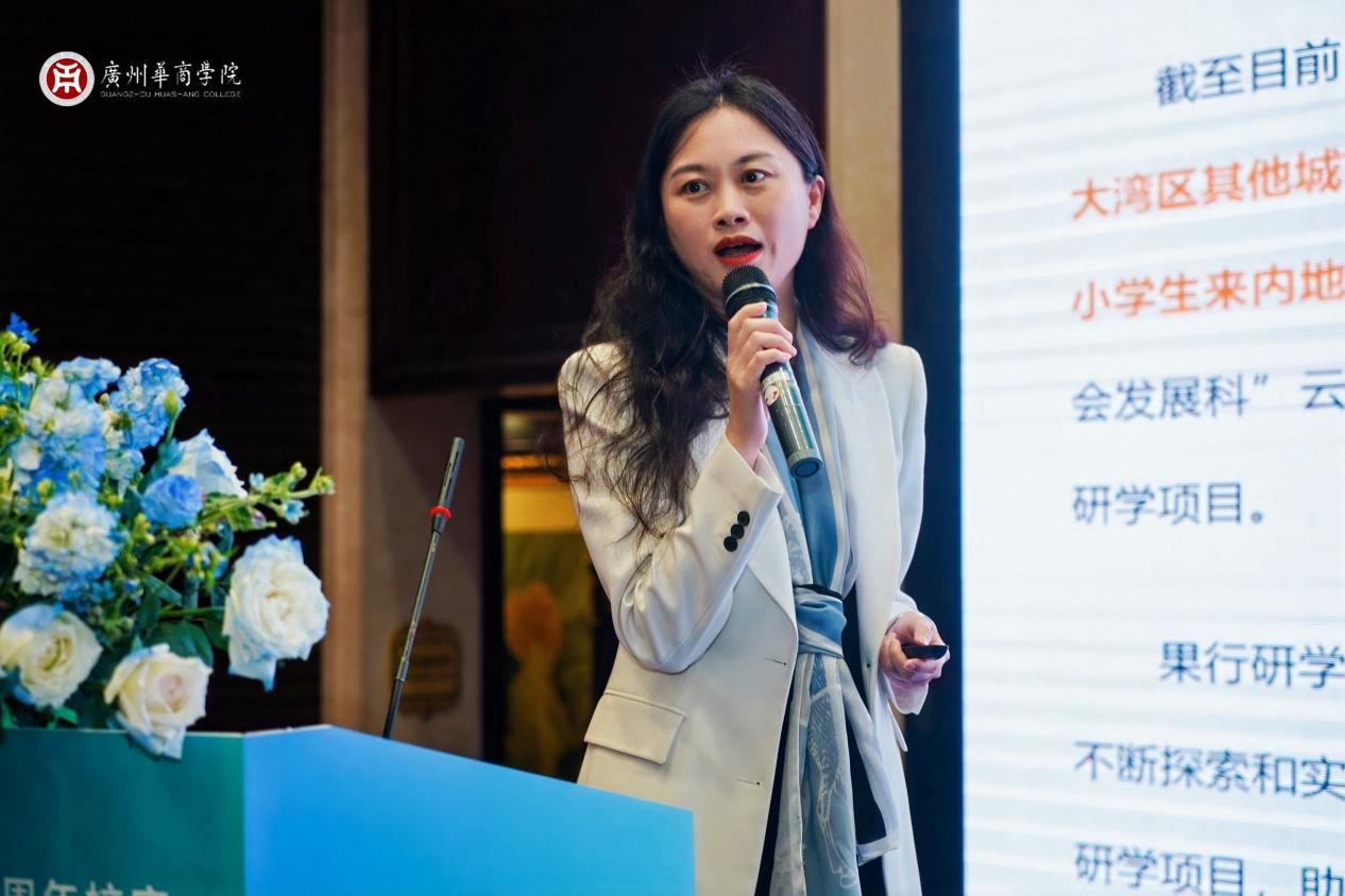 广州果行天下咨询有限公司总经理李冰轮发表了题为“Z时代研学人才如何培养”的演讲。李总经理从大湾区研学行业的现状出发,分析了研学人才需求的特点与趋势,提出了“六边形战士”的人才培养模型,即要求研学人才具备懂教育、会带团、有逻辑、重创意、能营销、善沟通等六项能力。她还介绍了公司内部的轮岗制度与人才培养策略,强调了企业与高校合作在人才培养中的重要性。