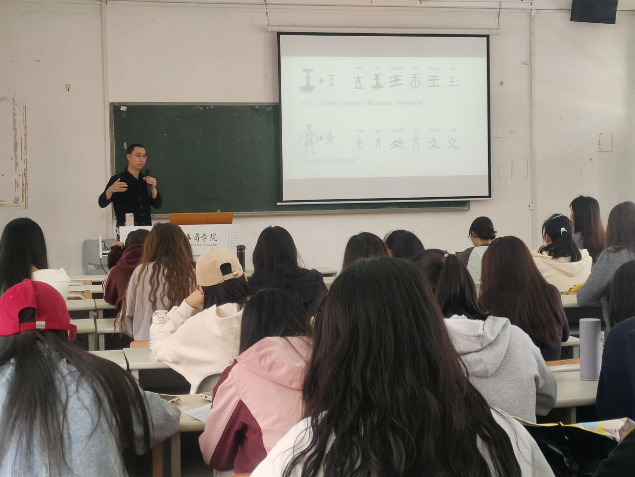他指出,汉字是书法的载体,“写字≠书法”书法既是“技”更是“道”。讲座中,梁副教授以甲骨文“男”“王”“文”等字为例,揭示汉字中蕴含的文化密码,强调书法需以人文素养为根基。陆维钊先生提出的“八个重视”(如文史哲修养、传统与创新并重等),至今仍是书法教育的核心框架。