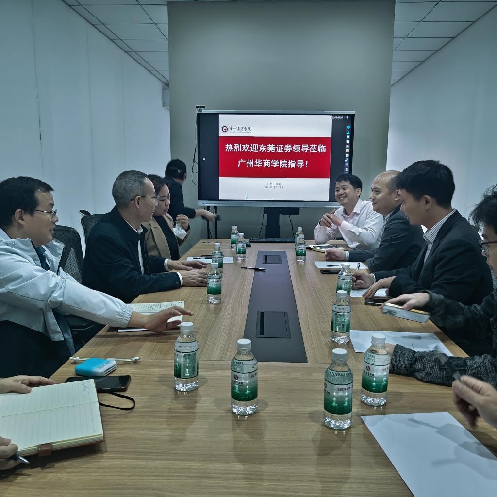 2024年11月21日,东莞证券股份公司长安分公司营销总监邓汉新、区域总监施祖林、区域总监助力林明辉一行受邀到访数字金融学院,共商建立产业学院事宜。威廉希尔中文网站数字金融学张纯威副院长、邱会锋副院长、李明杰副院长、数字经济与金融科技产业学院办公室主任赵娟、金融科技系副主任赵彬琰、金融工程系副主任廖志芳、经济与金融系副主任魏攀、数字金融学院钟坚毅副教授出席本次合作会议。