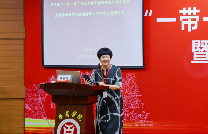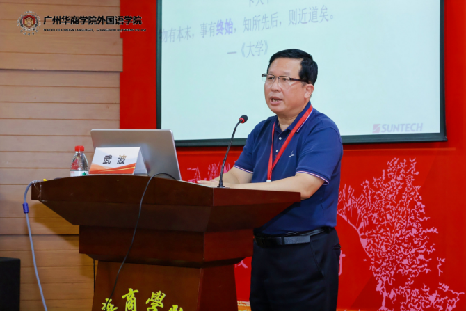 莫爱屏教授作题为《人工智能翻译教学模式的思考与探索》的主旨发言