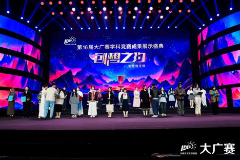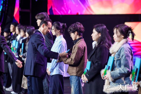 2024年11月23日,第16届大广赛学科竞赛成果展示盛典在北京东亿国际传媒产业园演艺大楼举行。教育部原副部长、中国高等教育学会原会长周远清,全国人大代表、中国戏剧家协会副主席、国家一级演员、再芬黄梅艺术剧院院长韩再芬,中国高等教育学会副会长、教育部高教司原司长张大良,教育部学生服务与素质发展中心党委书记、主任刘玉光,中国高等院校影视学会副会长兼秘书长张国涛等70余位嘉宾出席颁奖盛典活动。30位命题单位嘉宾,以及来自全国301所院校的近1700名师生到场参会。