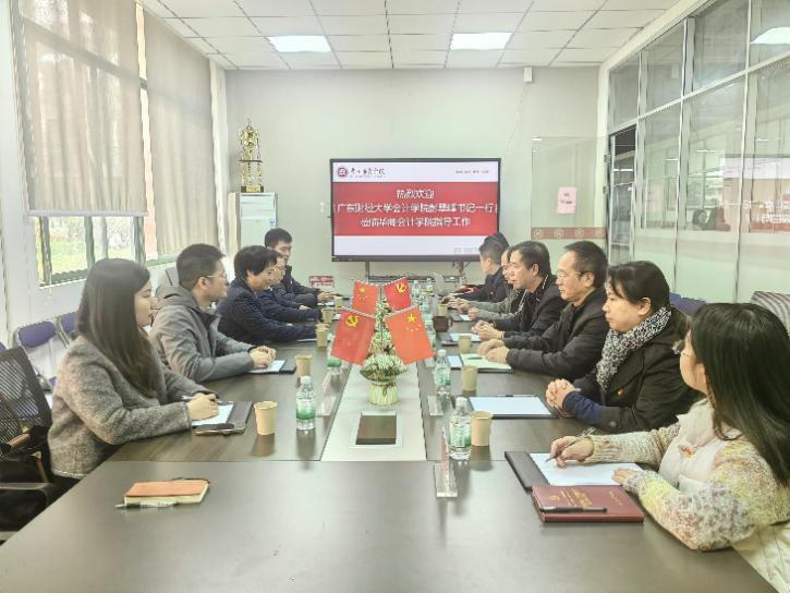 姚凤民院长首先对彭翠峰书记一行的到来表示热烈欢迎,并简要介绍了华商教育集团、威廉希尔中文网站及华商会计学院的基本情况。彭翠峰书记随后介绍了广东财经大学会计学院的概况,包括整体结构、师资队伍、人才培养、科研成就、校友工作和党建工作,深入阐述了党建“六维协同”模式。