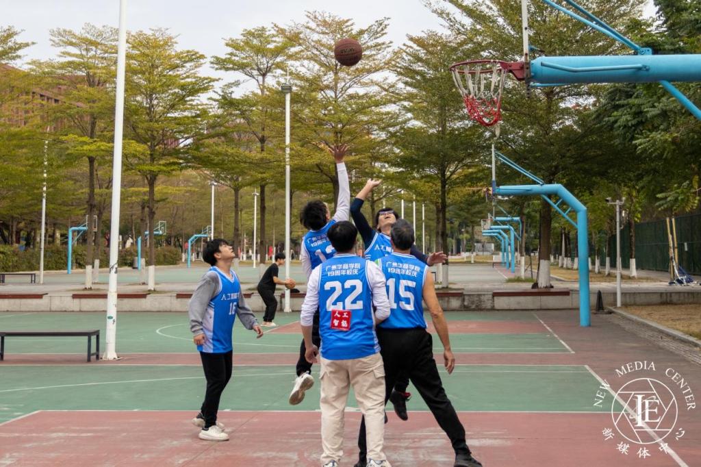 随后,人工智能学院师生在西区篮球体育场上演了一场精彩的体育友谊赛。尽管天气渐冷,但参赛选手们依旧热情高涨,奋力拼搏。每一次精准的传球,每一次果敢的投篮,都凝聚着球员们的梦想与坚持,展现着他们对胜利的渴望与拼搏。在赛场上,队员间的配合、比赛间的团结在此展现的淋淋尽致。观众们的呐喊声、助威声此起彼伏,为青春的热血与激情注入了无尽的动力,将整个活动推向了高潮。