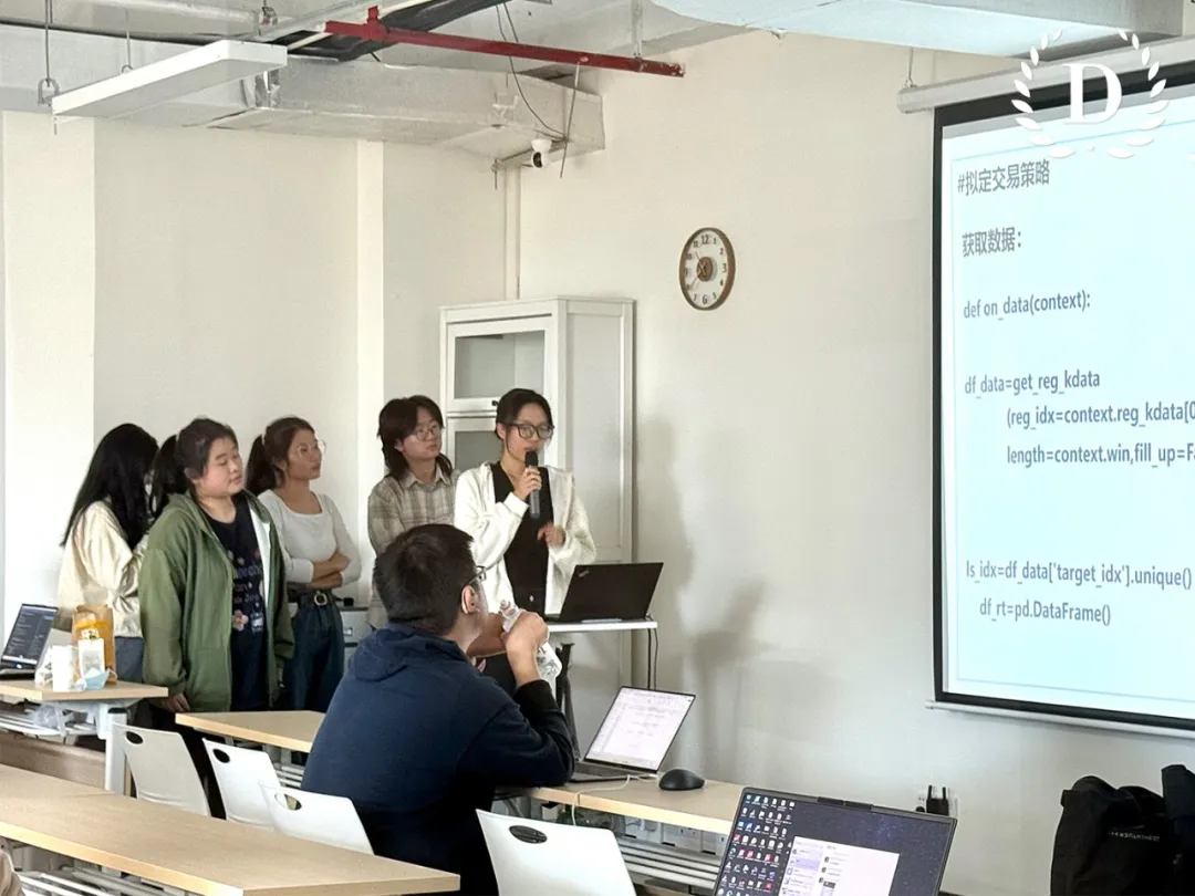在项目实践环节,同学们以小组形式参与了多个真实项目的全流程体验。从数据收集到策略构建,再到结果分析,每个环节都让同学们亲身体验了量化投资的复杂性和挑战性。通过具体的项目实践,同学们不仅加深了对理论知识的理解,还提升了实际操作能力和团队协作能力。最终以小组合作的形式制作“双/三均线策略实现答辩报告”,全面提升了他们的项目管理和分析能力,为职业规划提供新思路。
