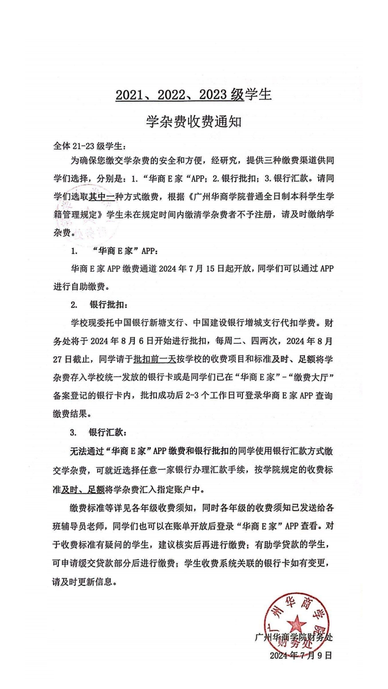 2024年2023级学生缴费须知