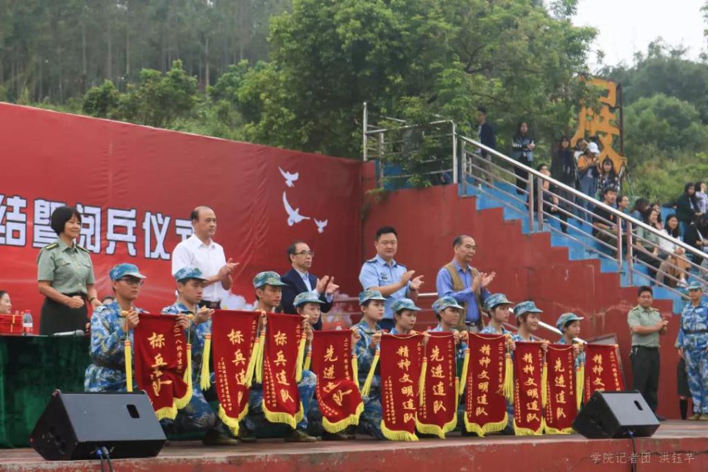军训团副团长龙少锋副院长宣读军训表彰决定,主席台领导进行颁奖,荣获军训“先进营”称号三个,荣获“先进连”、“标兵连”、“精神文明连”称号共十个,“优秀指挥官”两名,“优秀标兵”428名,“优秀教官"10名。他们的突出表现彰显军魂,是青春的榜样。