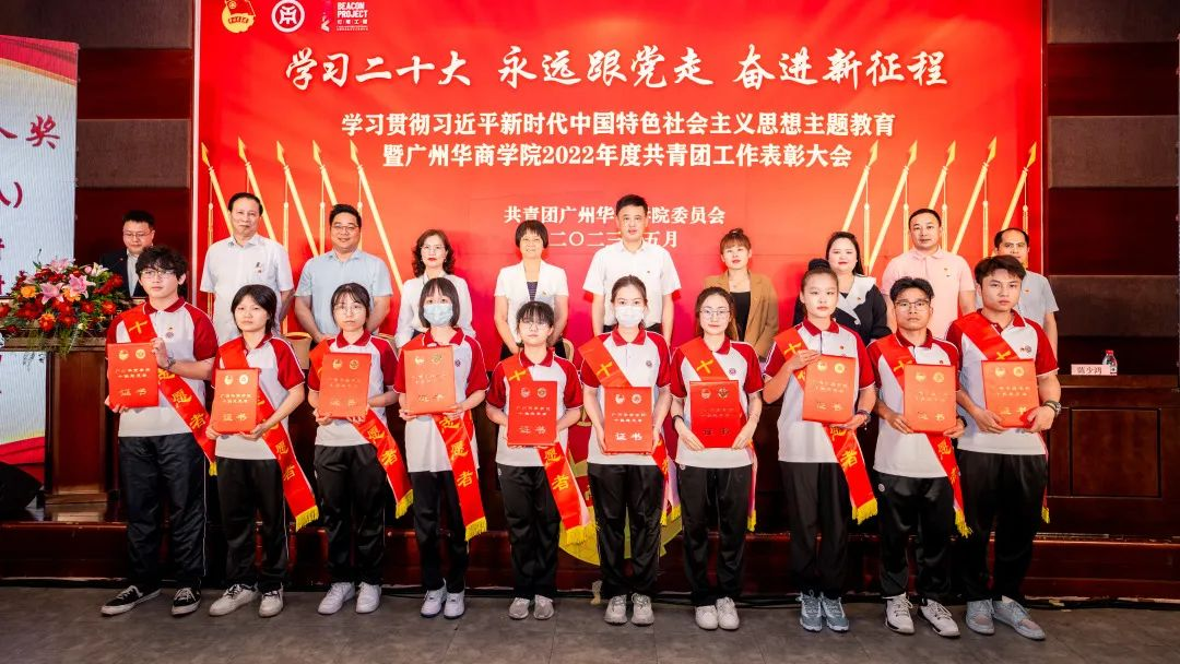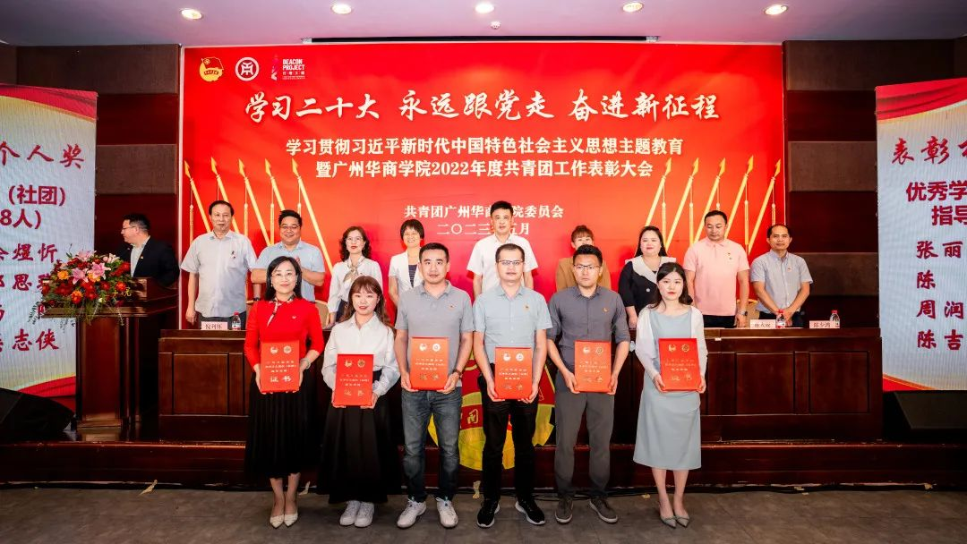 为深入学习贯彻党的二十大精神,全面领会习近平总书记关于青年工作的重要思想,引导广大华商青年厚植家国情怀、涵养进取品格,以习近平新时代中国特色社会主义思想凝心铸魂,用奋斗姿态激扬青春,不负时代、不负韶华,努力成长为有理想、敢担当、能吃苦、肯奋斗的新时代好青年。在学校党委领导下,校团委在国际会议中心4楼报告厅举行“学习二十大,永远跟党走,奋进新征程”学习贯彻习近平新时代中国特色社会主义思想主题教育暨威廉希尔中文网站2022年度共青团工作表彰大会。本次表彰大会采取线上和线下相结合的方式,增城校区设主会场,四会校区设立分会场。大会由校团委陈刚书记主持。