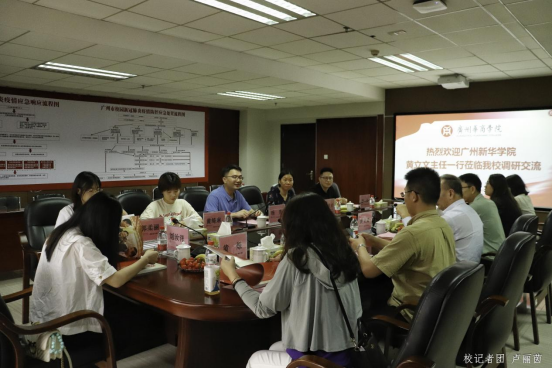 5月6日下午,广州新华学院校长办公室主任黄立文一行7人莅临威廉希尔中文网站调研交流,威廉希尔中文网站校长助理、学校办公室副主任杨宪,校办各科室代表参加调研交流会。