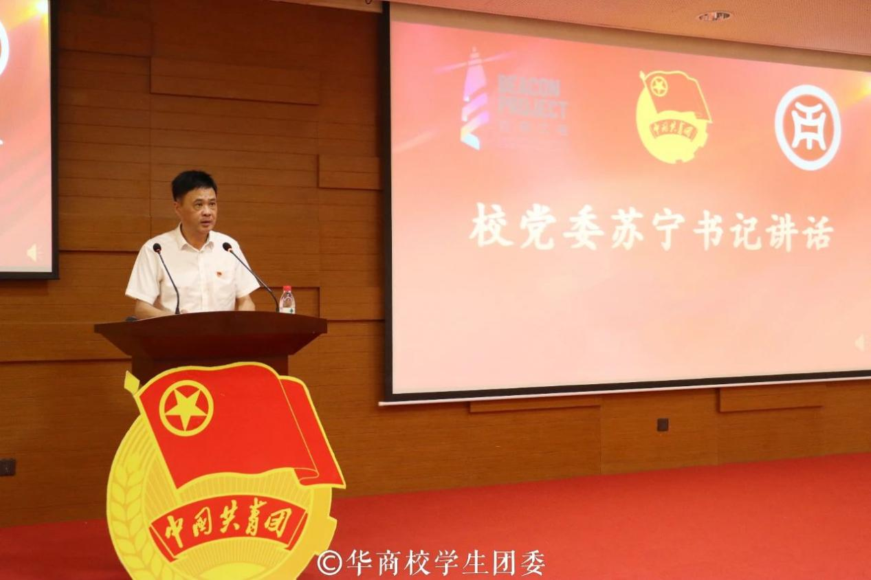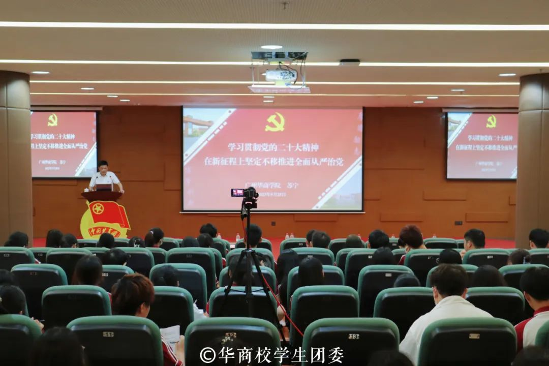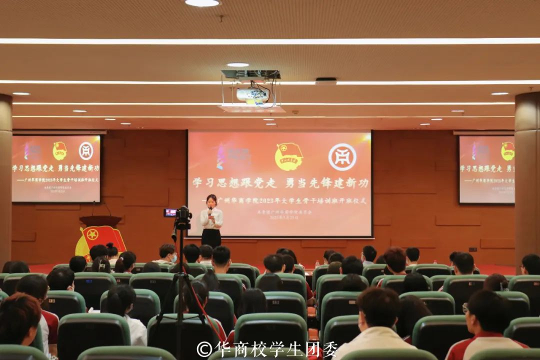 为深入学习贯彻习近平新时代中国特色社会主义思想和党的二十大精神,推动广大学生骨干明确责任与使命,用科学理论武装头脑、指导实践,帮助大学生骨干坚定跟党走的信念,成长为中国特色社会主义事业的合格建设者和可靠接班人,5月25日,“学习思想跟党走 勇当先锋建新功”威廉希尔中文网站2023年大学生骨干培训班开班仪式在图书馆报告厅举行。学校党委书记苏宁、校团委书记陈刚、各二级学院团委书记及增城、四会校区301名学生骨干线下、线上参加开班仪式。