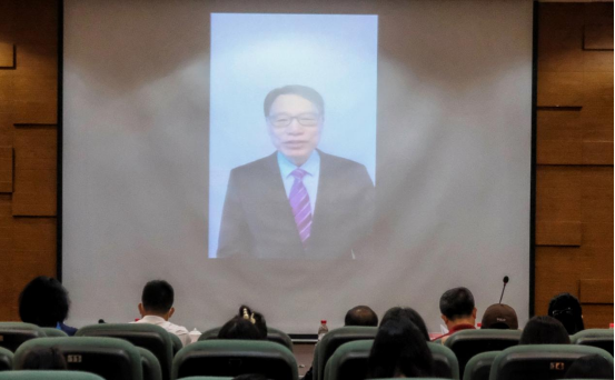 (陈新滋校长通过视频作致辞)