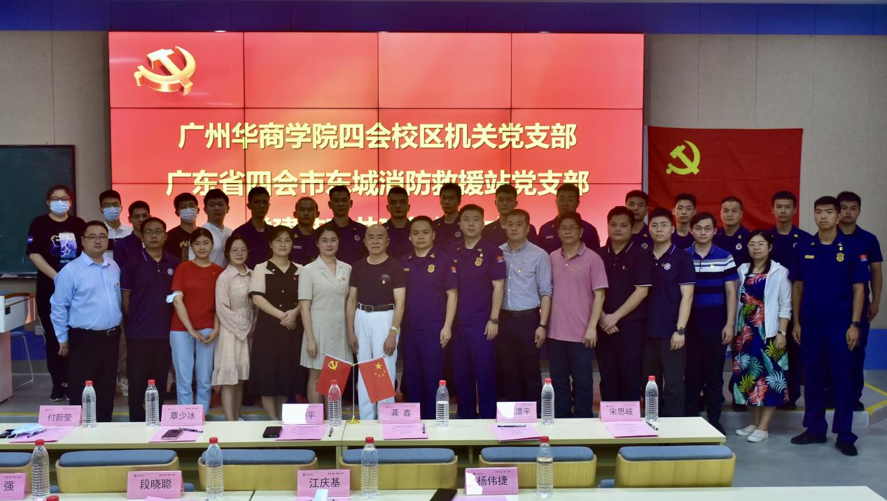 党建共建聚合力,结对互助促发展。为深入推进学习贯彻习近平新时代中国特色社会主义思想主题教育,2023年6月1日下午,在学校党委的指导下,四会校区机关党支部与四会市东城消防救援站党支部举行党建结对共建签约仪式。威廉希尔中文网站四会校区党委书记王卫平、副书记覃少冰、委员付蔚莹、段晓聪、江庆基,四会市东城消防救援站党支部书记宋思岐、教导员龚鑫、副站长陈澧平等领导出席本次活动,四会校区各党支部书记、支委、各支部党员代表、四会市消防救援大队指战员代表共同参加本次活动。