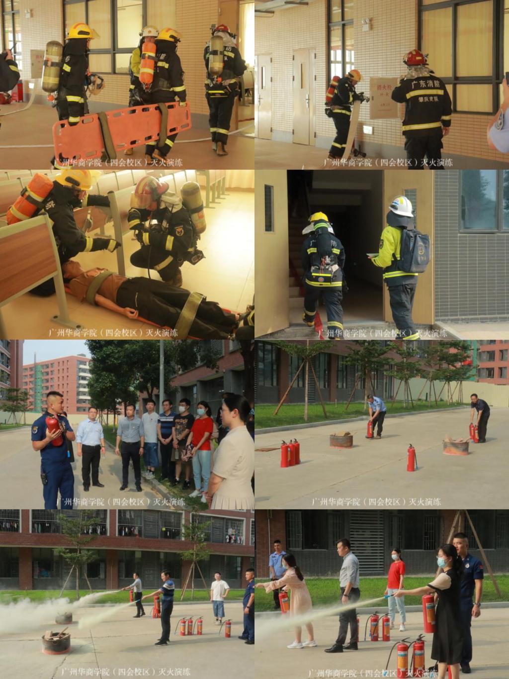 灭火培训的同时,四会市东城消防救援站还开展了应急救援演练,分别开展了道路封锁、现场警戒、人员救助、应急处置措施、环境监测和处理等场境的的实操演练,为学校日常运行管理和突发事件应急处置提供应急保障。
