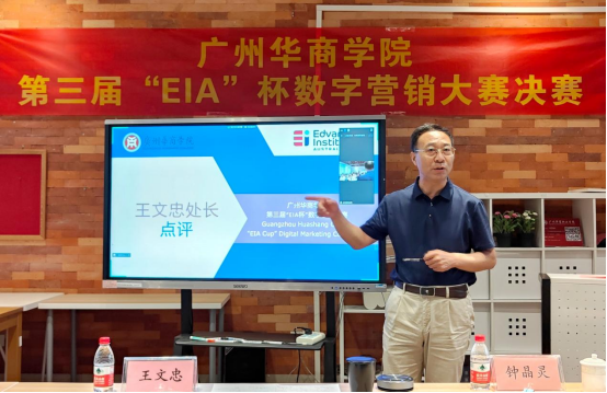 6月13日下午,威廉希尔中文网站第三届“EIA杯”数字营销大赛决赛在增城校区启智楼501举行,四会校区同学在线参赛。本次大赛主题为:数字时代,地方特色品牌如何走出本地拥抱全国。威廉希尔中文网站执行校长郭银华教授,校长助理、创新创业学院常务副院长余家军副教授,国际交流与合作处处长王文忠,管理学院院长助理袁仕海副教授,市场营销教研室主任钟晶灵担任嘉宾评委。