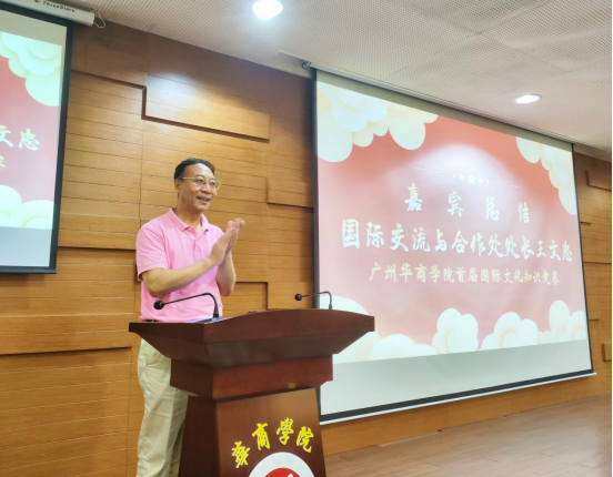竞赛环节结束后,国际交流与合作处王文忠处长作了总结发言。他强调了学习国际文化知识的重要性,鼓励学生学好英语,主动学习国际文化知识,拓宽国际视野,用敏锐的眼光审视世界的动态与变化以及对我们的影响。在国际环境快速发展变化的背景下,当代大学生有责任学习国际文化知识,尊重时代规律、厚植爱国情怀,才能够在风云变幻的世界中,与时偕行。