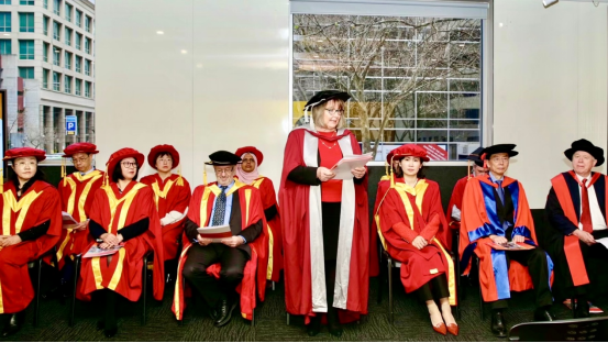 Jennelle Kyd教授主持典礼并介绍了华商教育集团的背景信息和EIA的发展历史。她祝贺毕业生们取得的优异成绩,并赞赏毕业生们在过去三年疫情中执着、勇敢应对各种的挑战,最终获得荣誉。她鼓励毕业生们在未来的人生道路上继续追求卓越,期待他们在各自职业生涯中取得更加辉煌的成就。她指出,EIA致力于成为一个在全球都受到认可的教育机构,它将继续为学生们提供有意义、有价值的知识和技能。