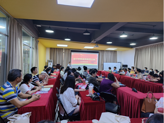 会上,刘善球副院长表示一定不辜负学校领导的重托,发扬会计学院优良传统,勤勤恳恳、兢兢业业,团结与带领全院师生励精图治、创新发展,为会计学院再上新台阶努力拼搏!