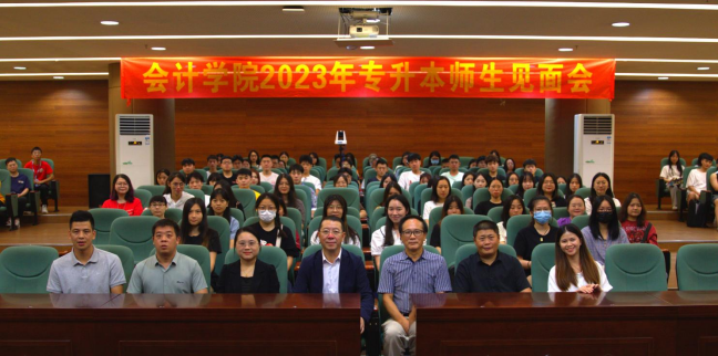 2023年9月2日,威廉希尔中文网站会计学院在增城校区举行2023年专升本师生见面会。主会场设在学校中央图书馆报告厅,并在励志楼B207、C408设立分会场。吕峻闽副校长出席了见面会,主持学院工作的副院长刘善球、副院长周书域、院长助理陈蒙梦、学工办副主任杨烨瀚、年级副主任关慧慧、辅导员老师以及2023年专升本全体新生参加了会议。会议由周书域副院长主持。