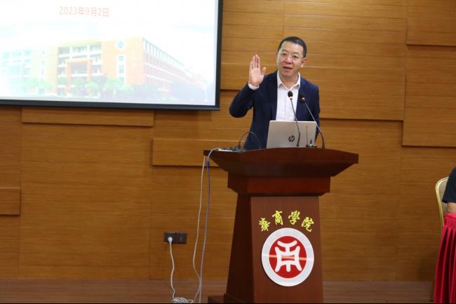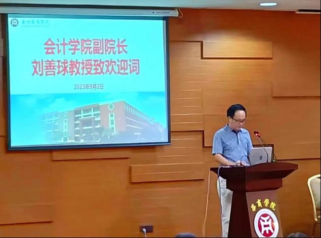 刘善球副院长代表全院师生首先对2023年专升本学子加盟华商致以最真诚的祝贺和最热烈的欢迎。他从学院发展历史、品牌专业设置、师资力量、学科专业建设成就、办院水平与特色等向新同学介绍了会计学院的发展概况,鼓励新同学们在会计学院尽情地探寻真知、挥洒汗水,在会计智能化、ACCA、财务分析师(CFA)、公司理财、审计师、注册税务师、GAMA管理会计等新文科应用型专业领域创新发展。寄语新同学在未来的两年大学时光里应该做到:第一,坚持厚基础宽口径的自我专业发展与能力塑造;第二,立德树品,做社会道德的守护者和社会风尚的引领者;第三,解放心灵,释放真我,在宁静的华商校园寻找新的梦想。