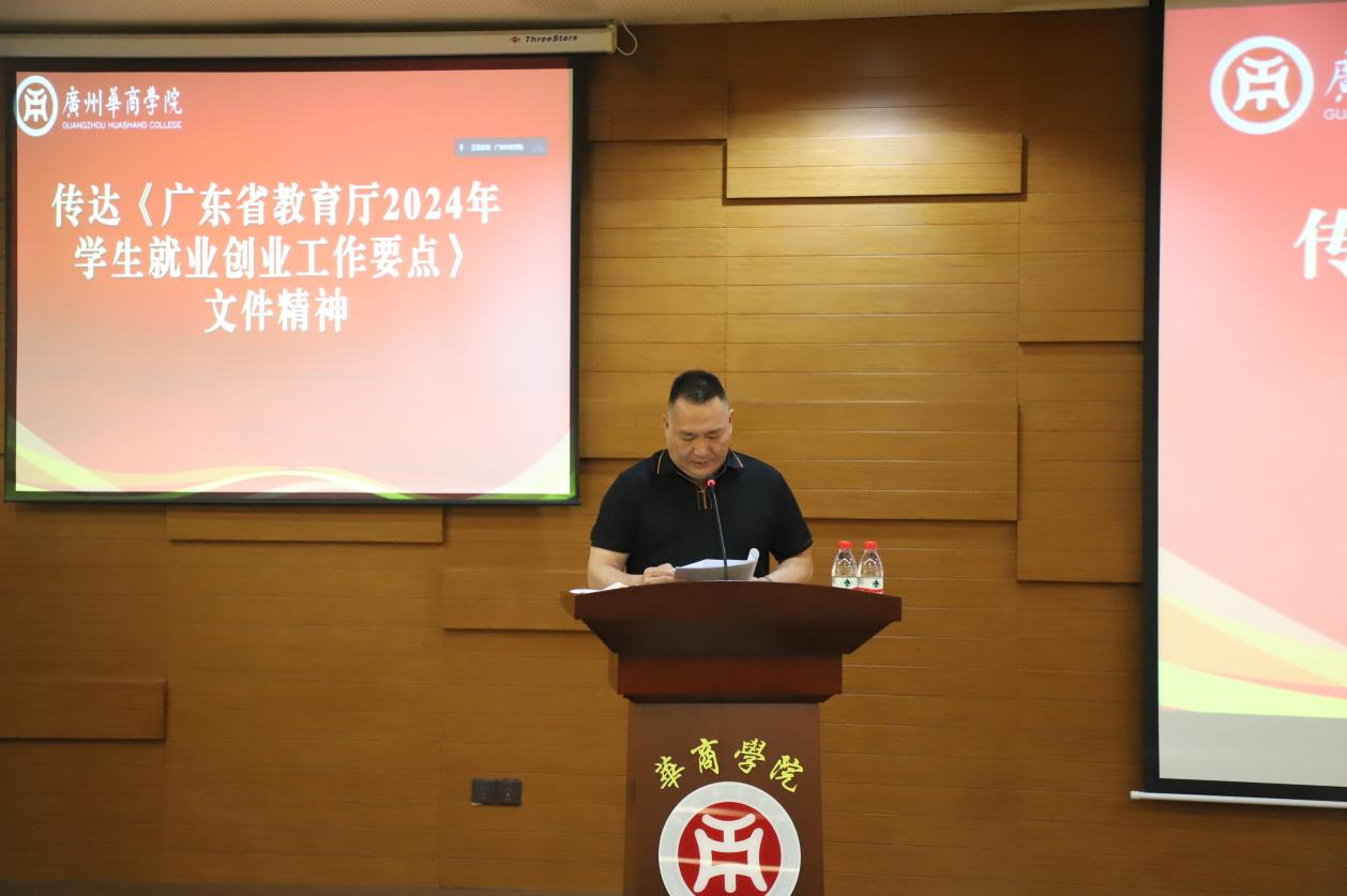 会议伊始,曾龙威处长传达了《广东省教育厅2024年学生就业创业工作要点》文件精神,切实做好高校毕业生就业创业工作,确保2024届高校毕业生就业大局稳定。坚持以习近平新时代中国特色社会主义思想为指导,全面贯彻党的二十大精神、二十届二中全会精神、中央经济工作会议精神和省委省政府部署要求,坚持稳中求进、以进促稳、先立后破的工作主基调,以就业育人为根本,以观念引导为主线,以拓展岗位为支撑,以指导服务为抓手,推动高校毕业生高质量充分就业,激发创新创业活力,发挥创业带动就业倍增效应。