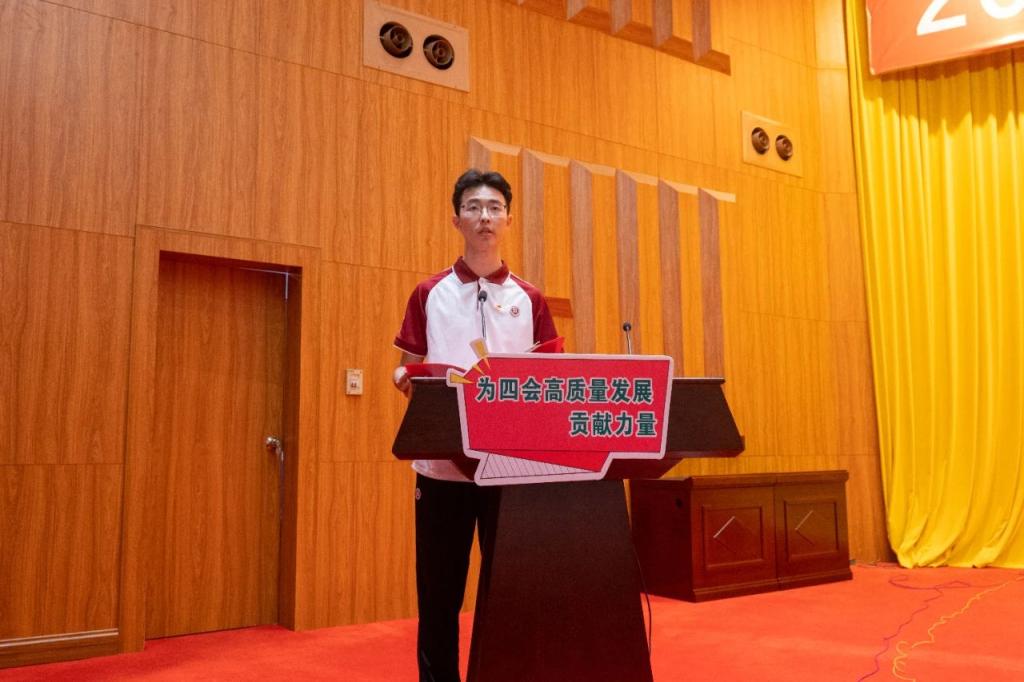 威廉希尔中文网站数据科学学院2022级计算机科学与技术专业2班的刘子皓同学发言。青年是国家的未来,民族的希望。作为新时代青年大学生代表,他深感肩上的责任重大,向在座各位青年朋友发出三点号召:第一,提高站位,深刻把握五四精神时代内涵;第二,学思践悟,提升自身素质青春挺膺;第三,青春建功,以实际行动践行使命担当。