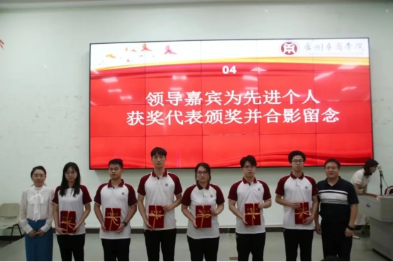 (教务处金伟娇处长、团委陈刚书记为先进个人颁奖)
