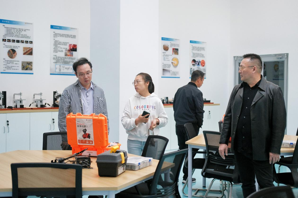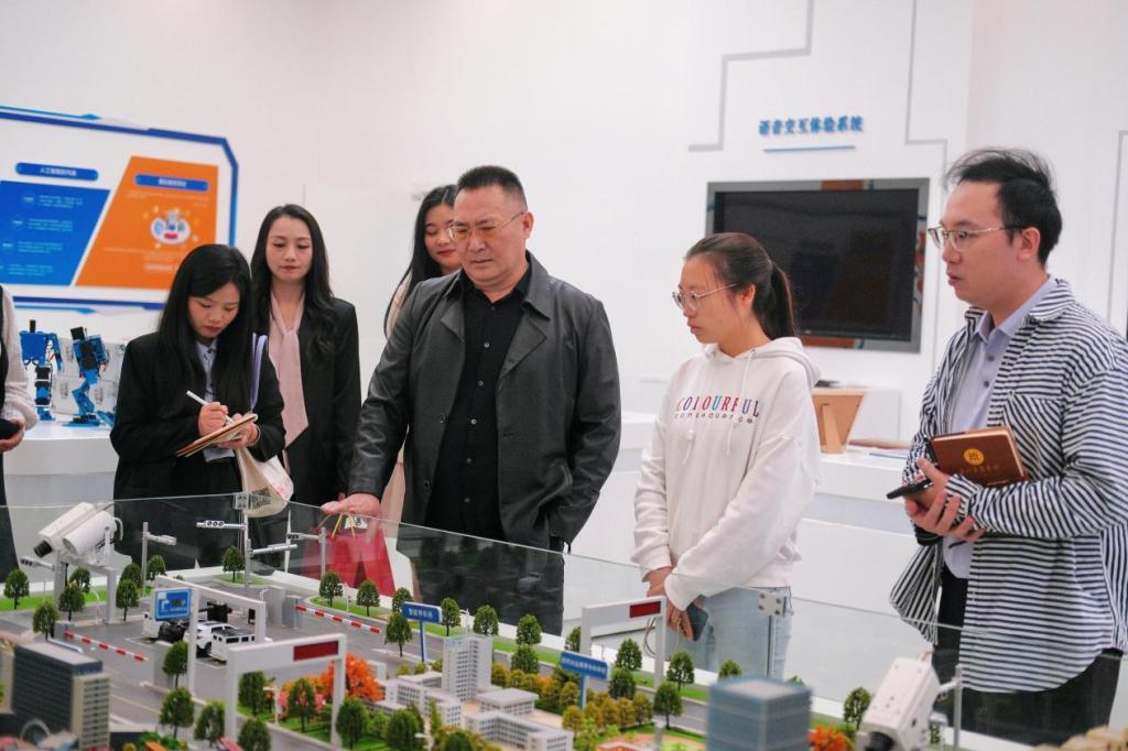 第二站,曾龙威处长一行参观了昆明冶金高等专科学校的智创实践教学基地,包括AI智慧学习实验室、智能机器人创新实验室、VR虚拟实验室等多个创新实验室,深入了解了该校在创新教育和实践教学方面的成果。在座谈交流中,双方就人才培养、就业创业服务等方面进行了深入探讨,重点讨论了创新创业体制机制、师资队伍建设、学校建设“一站式”就业创业服务等情况,为威廉希尔中文网站就业创业工作提供了新的思路和方法。