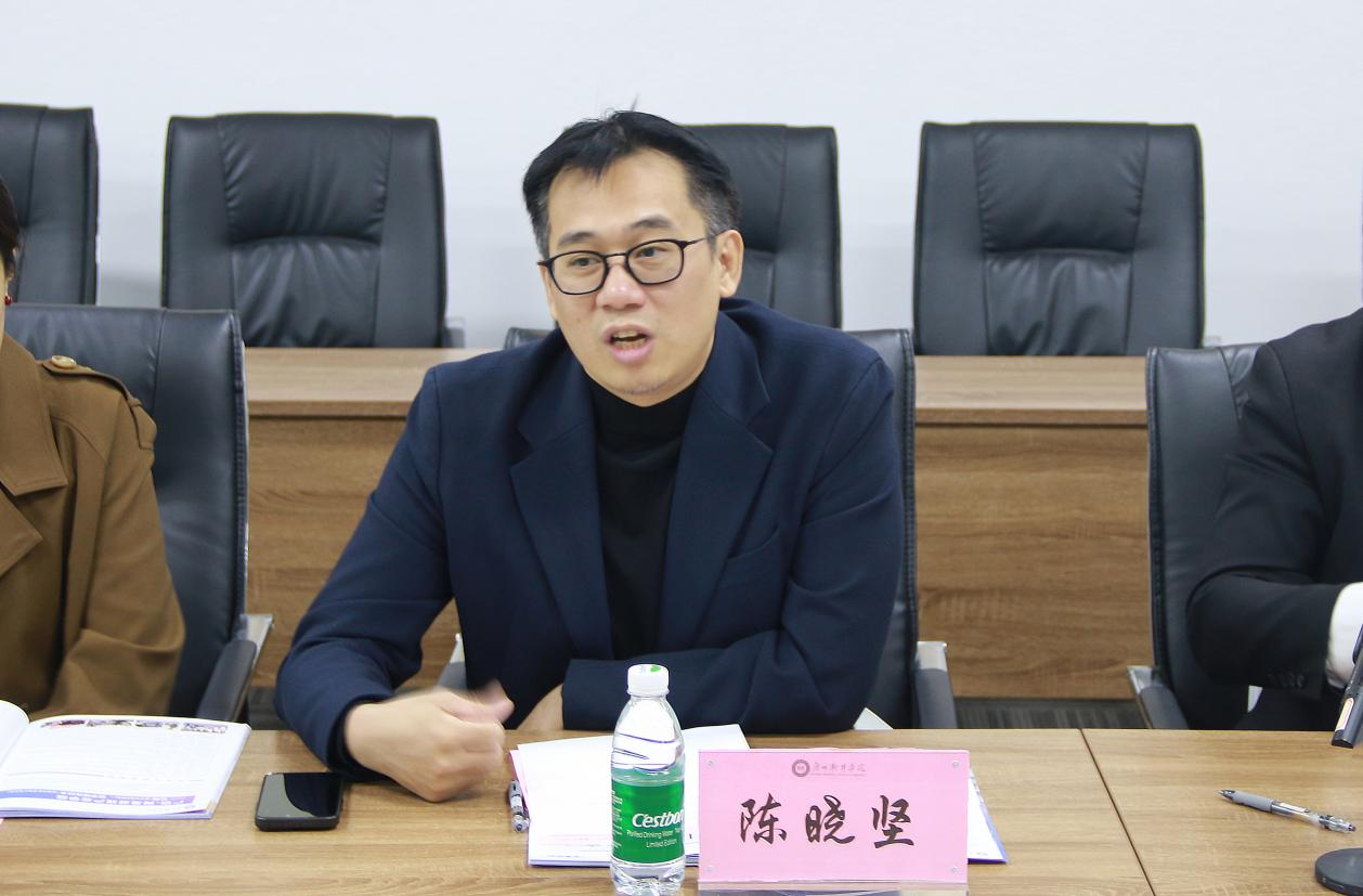 (威廉希尔中文网站动漫产业学院执行院长陈晓坚介绍学院情况)