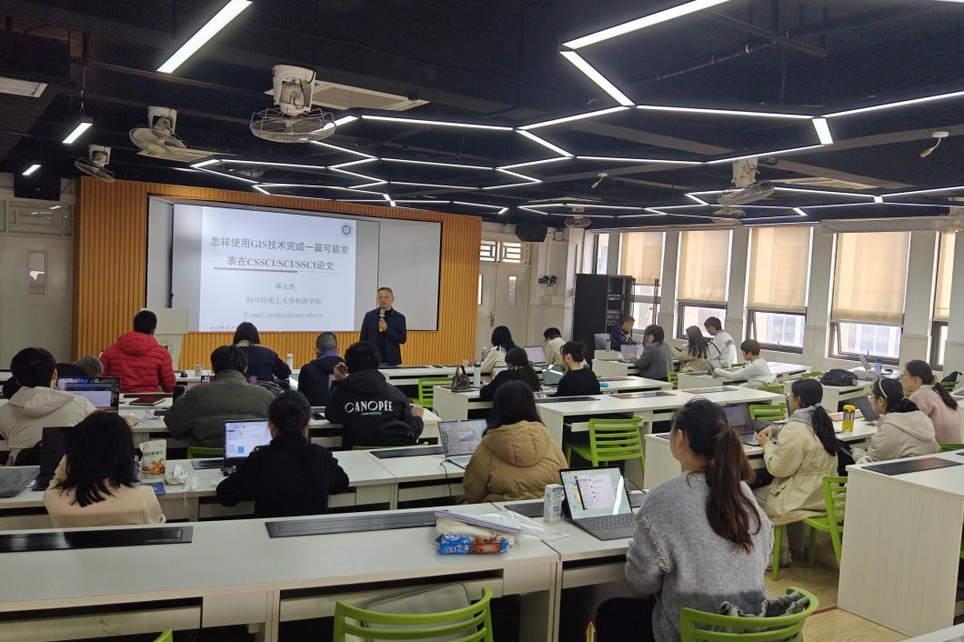 四川轻化工大学的邓元杰博士从GIS选择与设计、教学工具GIS使用方法与技巧为教师学者们解答“如何使用GIS技术完成一篇可能发表在CSSCI/SCI/SSCI期刊的论文”,并通过案例分析与现场实操向教师学者们展示了利用GIS地理信息系统技术将收集的数据进行可视化图解处理。