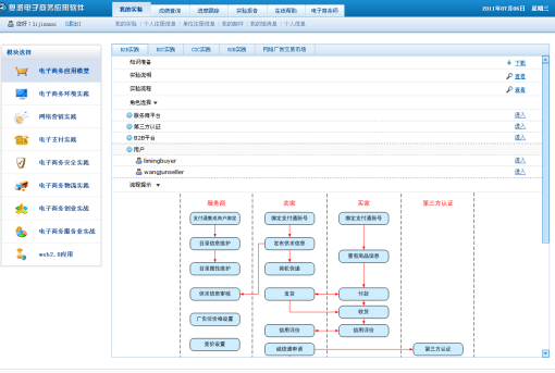学院始终重视对专业实验室的建设,逐步增加投入,购置先进实验软硬件,提高设备利用率,深化实验室管理。我院于2014年10月21日召开了14级教学计划修订研讨会上确定将“电子商务”课程作为全校的公共课开设,根据我院14级本科教学计划统计:涉及到8个系的28个专业(含方向)开设了《电子商务概论》课程,暨时全院至少有72个教学班同时使用这个平台。该平台除容量大、效率高的特点外,该平台的虚拟化功能几乎涵盖了电子商务的所有内容,同时还具有远程访问的功能,学生除在实验室使用外还可通过校园网远程登录,真正打破了时间和空间的限制。该平台的投入使用标志着我院综合实验教学的质量有了新的飞跃。