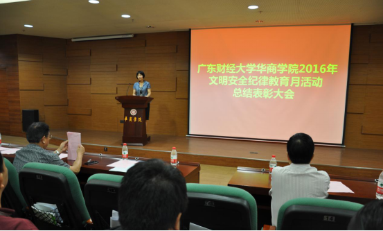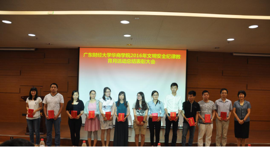 学生处副处长熊桂桃首先宣读了《关于表彰文明安全纪律教育月活动中先进集体和个人的决定》(华商院学〔2016〕10号)。接着,王锦秀副院长为杨烨瀚等12名先进辅导员颁奖,刘德平处长为13级会计学2班等23个先进班集体颁奖,熊桂桃副处长为获得先进个人称号的学生代表颁奖。希望他们戒骄戒躁,继续为创建美好、和谐的校园起到模范带头作用。