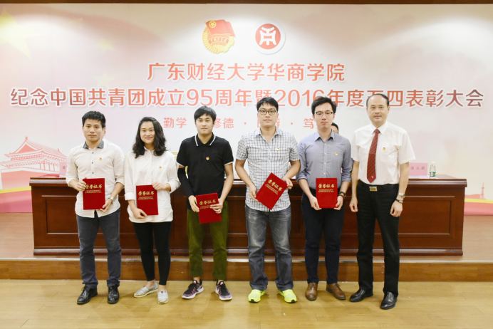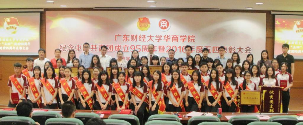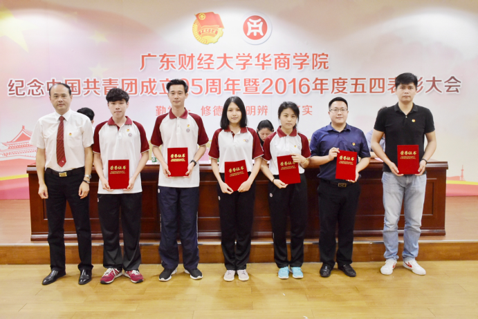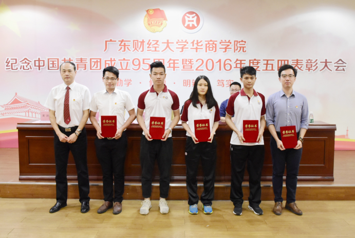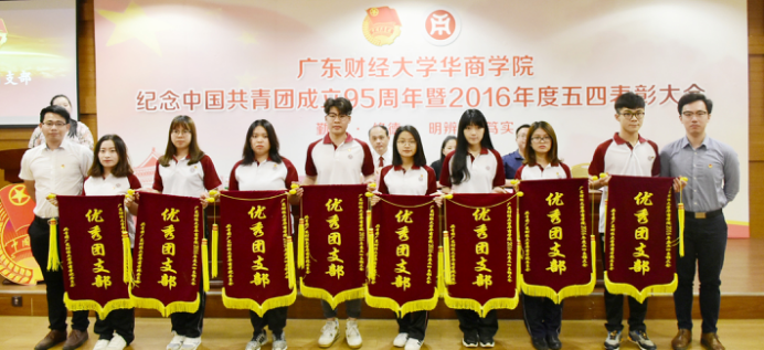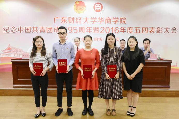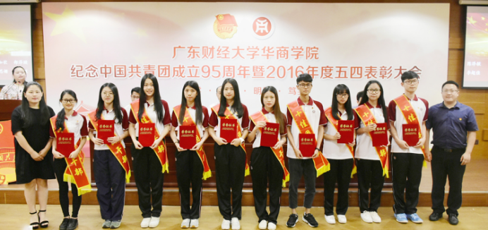 大会对第三届“大智慧杯”全国大学生金融精英挑战赛获奖团队;2016-2017年度广东省优秀学生会、优秀学生社团、优秀学生干部;2016年广东省大中专学生志愿者暑期文化科技卫生“三下乡”社会实践活动优秀单位、优秀团队、优秀个人;广东省“南粤长城杯”电视网络演讲比赛获奖个人;第十一届广东大中专学生校园文体艺术节获奖团队;增城区“青年文明号”获奖团队;院级五四红旗团总支;先进基层学生会;志愿者工作先进集体;优秀学生社团;优秀团支部;优秀团务工作者;优秀学生组织(社团)指导老师;十佳共青团干部;十佳共青团员;十佳志愿者等进行了表彰。