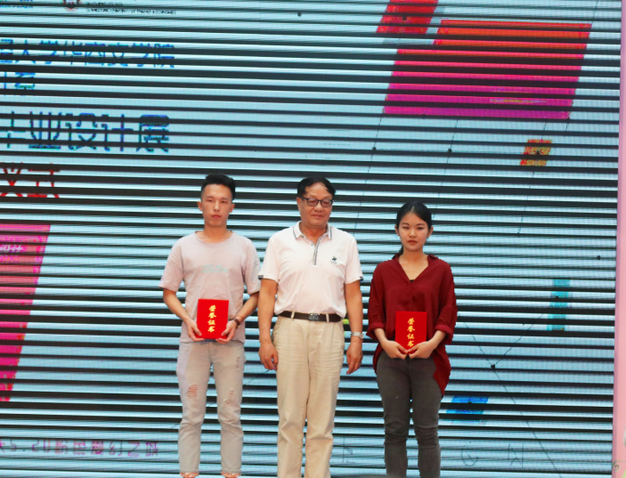 随后,万达广场的杨总经理和艺术设计系熊应军主任也为同学们送上了期许与祝福:希望同学们走上社会后,记得“常回家看看”,也要常怀一颗年轻的心,同时也祝愿同学们前程似锦,一帆风顺。接着艺术设计系黄功翔老师及曾惜敏同学分别上台发言。老师简单地介绍了本次艺术设计展的内容与历程,鼓舞同学们勇敢奋发向上,继续前进。