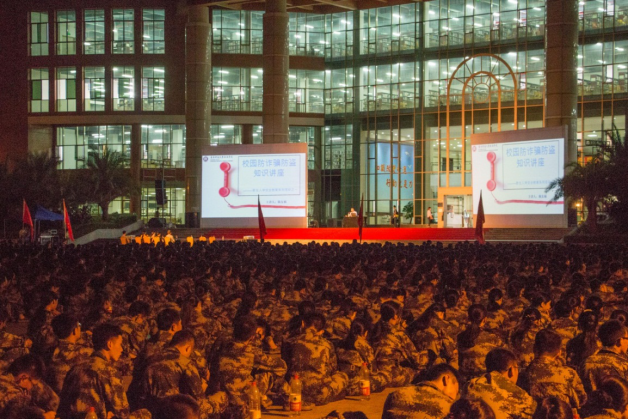 为普及学生安全防范知识,减少各类安全问题发生,提高学生应急处置能力,自我保护意识以及应急处置能力,让同学们能够顺利的开始大学校园生活,9月13日晚上7点,我院在中央图书馆广场举办了防诈骗防盗知识讲座。本次讲座由2017级新生军训领导小组成员、学院办公室卢新勤主任主持,增城区雁塔派出所陈友福副所长主讲,2017级新生5300人听取了讲座。