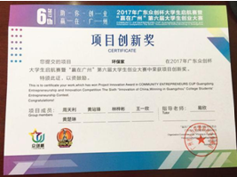 近日,威廉希尔中文网站《环保家》、《UU伞》2个项目在由广东省人力资源和社会保障厅、广东省教育厅、广东省人民政府港事务办公室、广东省人民政府台湾事务办公室、共青团广东省委员会共同主办,广州市人力资源和社会保障局承办的2017年广东“众创杯”大学生启航赛暨“赢在广州”第六届大学生创业大赛中,荣获“项目创新奖”。