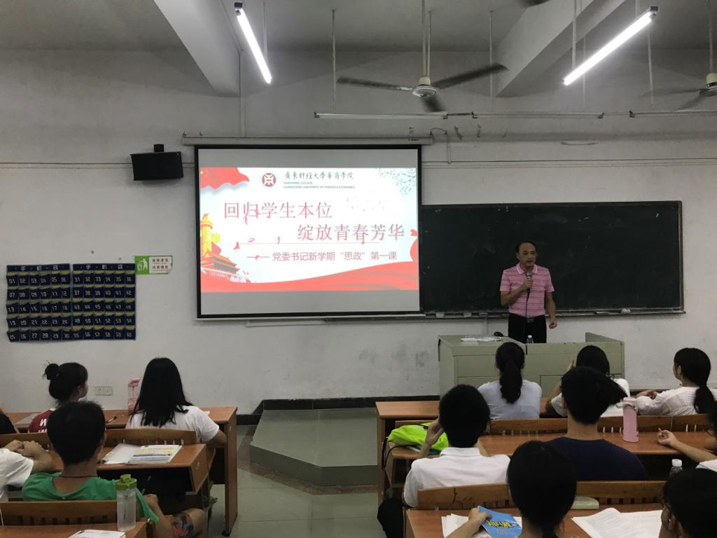 9月26日下午七点,学校党委苏宁书记在励志楼C201开讲题为《回归学生本位,绽放青春芳华》的新学期“思政”第一课,威廉希尔中文网站组织2018级新生代表300余人认真聆听了此次讲座。