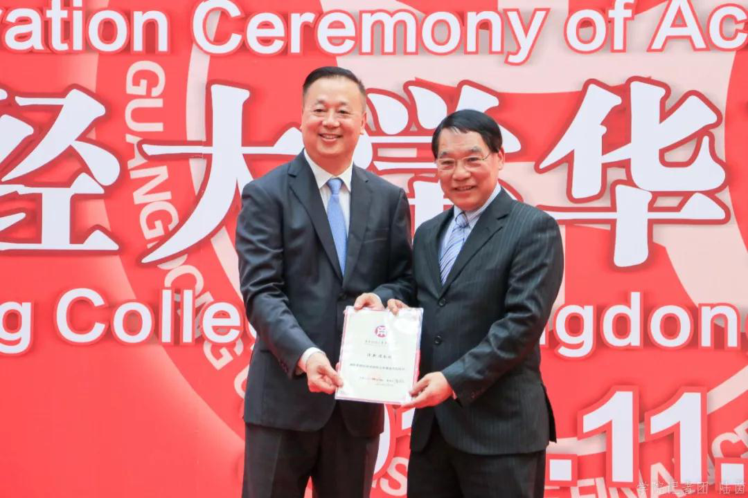 典礼上,廖榕就董事长给陈新滋校长颁发了聘书。