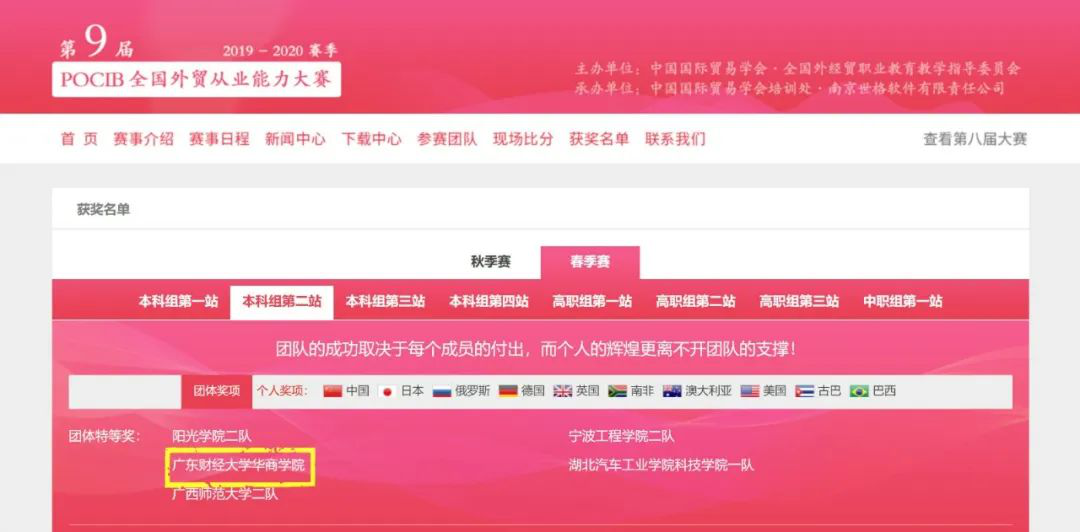 2020年6月18日上午10时,第九届POCIB全国大学生外贸从业能力大赛(春季赛)落下帷幕。本次大赛历时15天,参与角逐的2550名选手分别来自全国的131所院校。威廉希尔中文网站经济与金融系国际经济与贸易学专业张小玲、岑眉、卢博欢、朱芳仪、张婉仪、陈恩婷、李琪芸、刘琼穗、陈洁玲、廖思婷10名参赛选手在黄丽霞、张文杰两位指导老师带领下,凭借200笔进出口业务,2518封邮件,累计1811小时在线时长,与竞争对手的PK中过关斩将,以团队第三的历史新排名,喜提团体特等奖,并收获个人一等奖2个、二等奖4个、三等奖4个。(个人奖项设置率为40%)