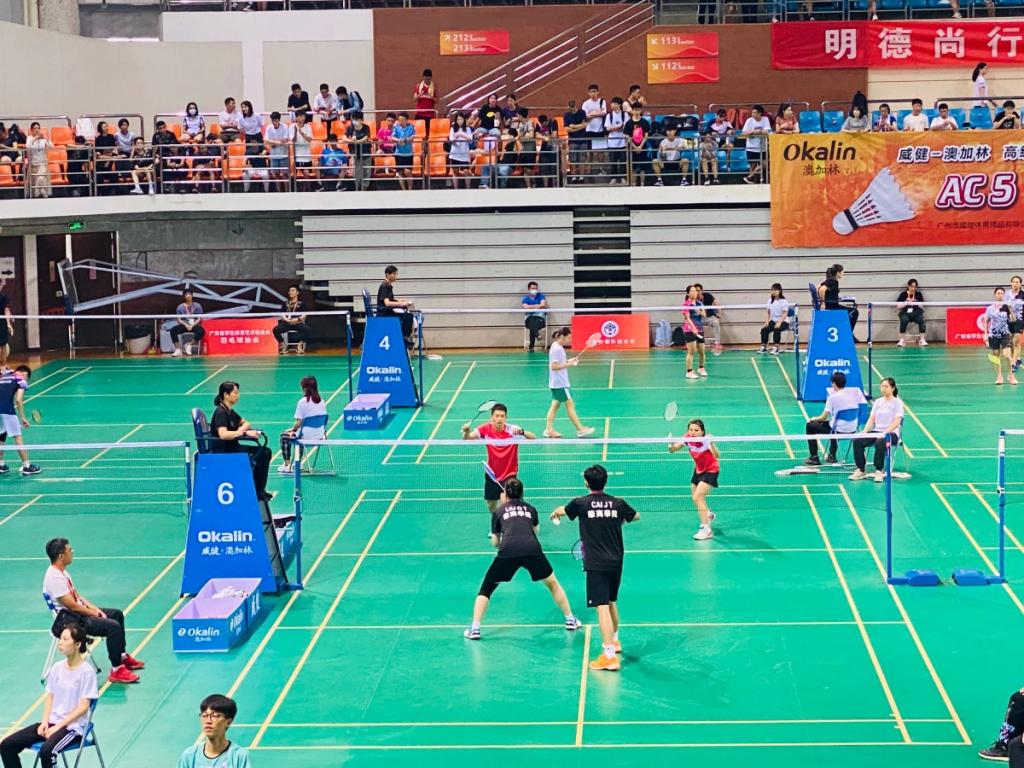 经过四天时间烈激角逐,2021年广东省大学生羽毛球赛于5月17日下午在大学城落下帷幕。本次赛事由广东省教育厅主办,广东省学生体育艺术联合会执行,广东外语外贸大学承办,来自全省53所高校的大学生进行角逐。威廉希尔中文网站羽毛球队不畏强敌,层层拼杀,冲出重围,发挥华商学子敢打敢拼的精神,最终获得本次大赛团体总分二等奖,威廉希尔中文网站工商管理系的蔡锦涛和经济与金融学院的刘沁桐获得混双第三名,国际学院的傅诩恩获得女子单打第五名的好成绩。体育教学部教练员吴志侠、文桃陵获优秀教练员称号。