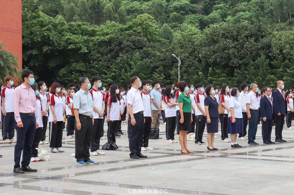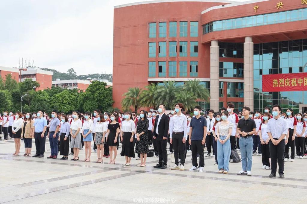 百年征程波澜壮阔,百年初心历久弥坚。2021年7月1日上午7时,为热烈庆祝中国共产党成立100周年,将党史学习教育推向新高潮,培育华商人不忘初心、牢记使命的信念,威廉希尔中文网站隆重举行升旗仪式。郭银华执行校长、校党委苏宁书记、支戈壁副校长、校党委副书记王锦秀副校长、张捷副校长、陈美华副校长、程辛荣副校长、韩兆洲副校长、王力东副校长、学工部许娜部长、校团委刘苗书记、校团委陈刚副书记、校团委老师、各院系团总支书记、以及校级学生组织代表、各二级院系学生代表近700人统一身着正装和校服,党员同志佩戴党员徽章、共青团员佩戴团徽,精神饱满,情绪高昂,参与此次升旗仪式,庄严献礼党的百年华诞。