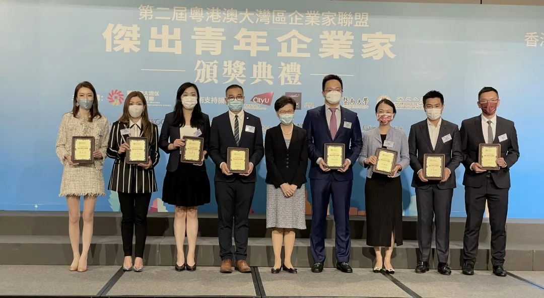 此次评选所设奖项包括粤港澳大湾区杰出青年企业家、最佳创业奖、最佳科技创新奖、最佳商业服务奖、最佳社会责任奖及最佳文化创意奖。