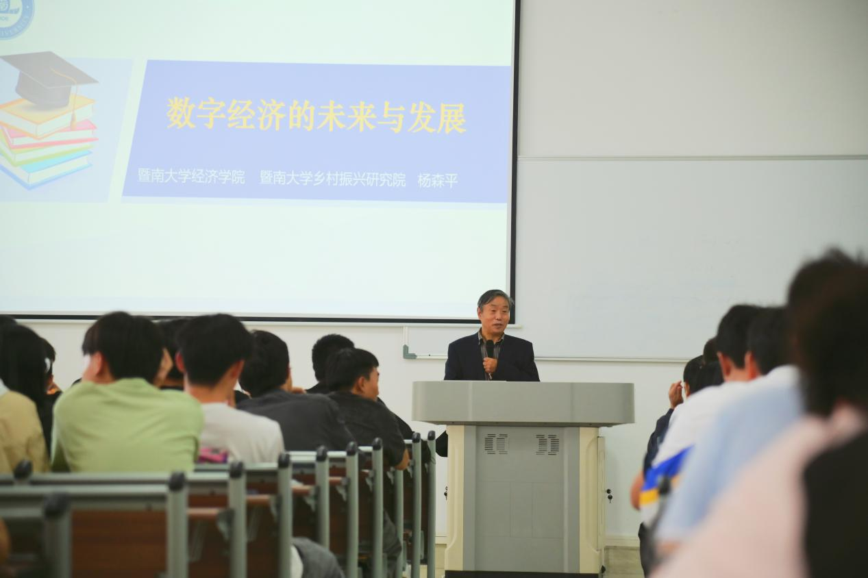为营造学术氛围,开拓威廉希尔中文网站四会新生的知识,管理学院于2021年10月18日下午16时,在威廉希尔中文网站四会校区举办主题为“数字经济的未来与发展”的学术讲座,特邀暨南大学经济学院教授、博士生导师杨森平教授主讲,讲座由管理学院院长李招忠教授主持,管理学院教师代表和四会校区学生以及其他学院学生出席本次讲座。
