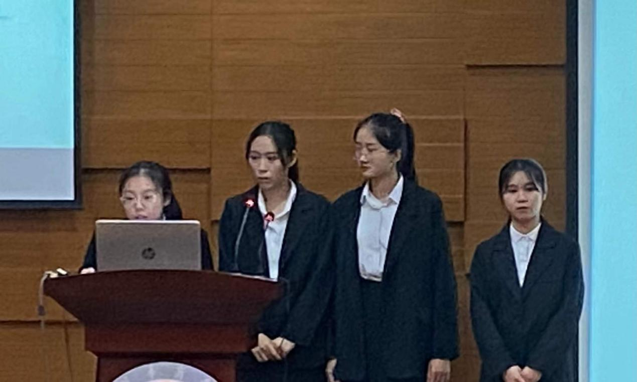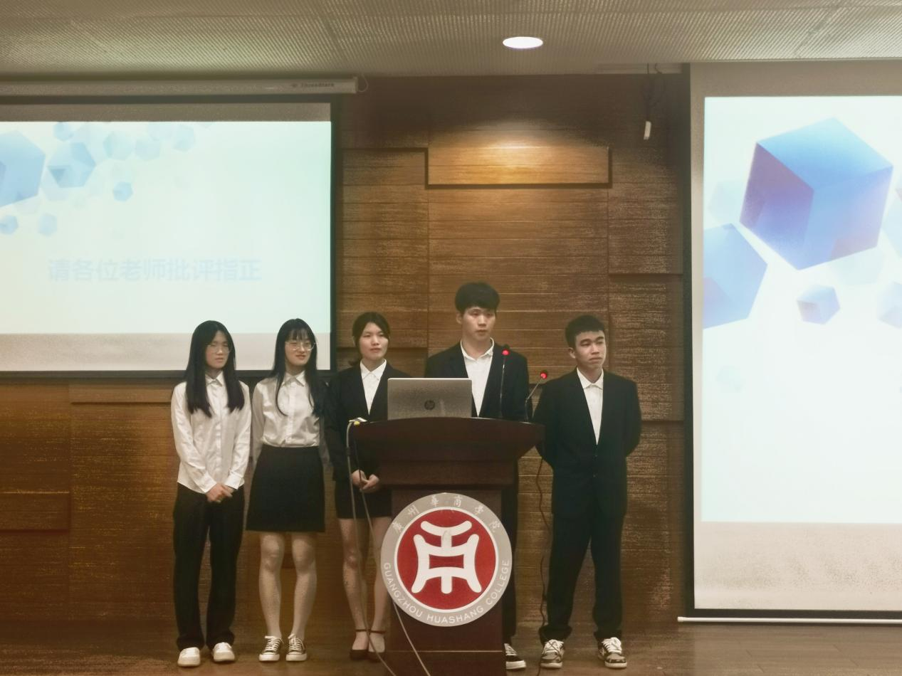 决赛开始,参赛的小组轮流上台进行小组风采展示和ppt案例展示,四雄争霸,各显神通。他们通过PPT展示作品的要点,每支队伍都对选定的项目类别有较深入的见解,面对评委的提问,回答逻辑清晰,向我们展现出大学生独特的风采。