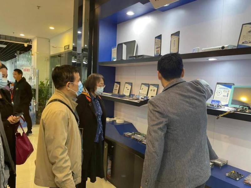 程辛荣副校长一行在粤嵌科技副总经理邓人铭等人的陪同下,参观粤嵌科技,并考察粤嵌创新成果展示廊及众创空间,全方位感受粤嵌的环境和工作氛围。