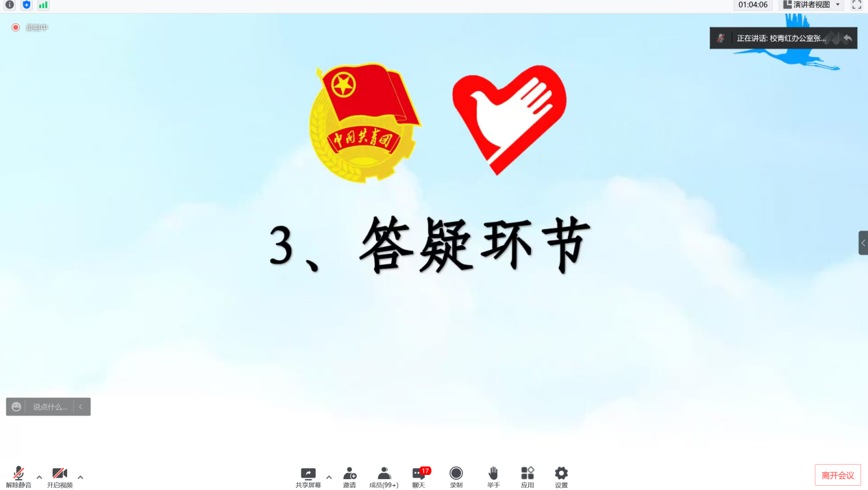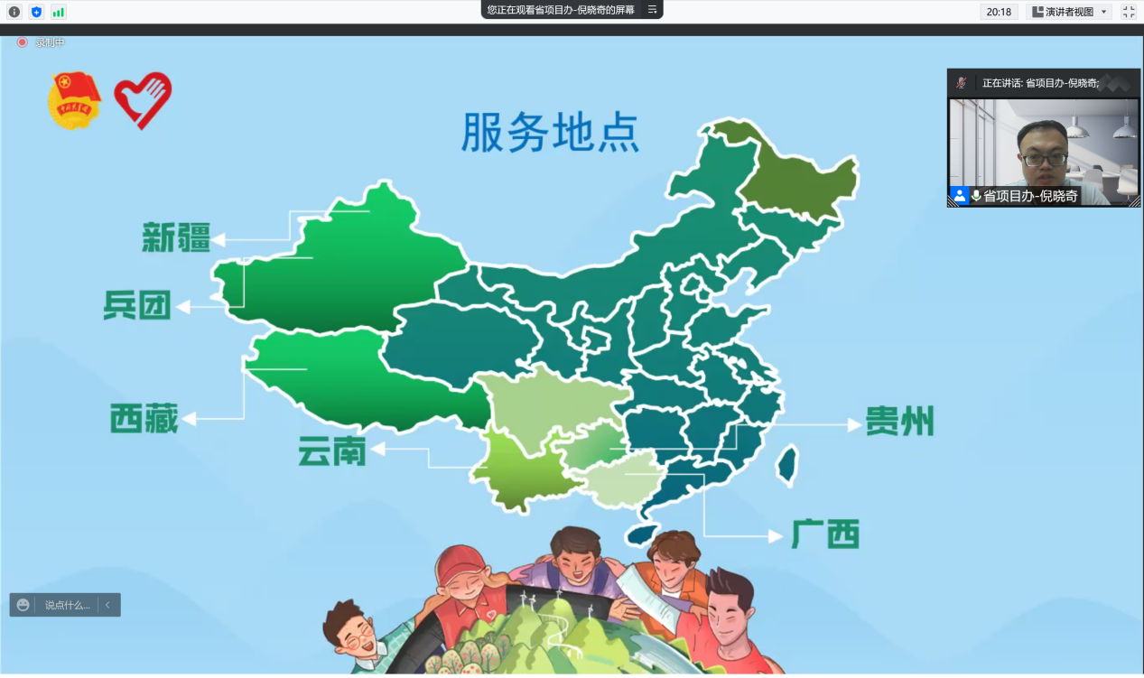 习近平总书记曾在全国高校思想政治工作会议上指出:“要鼓励高校学生把视线投向国家发展的航程,把汗水洒在艰苦创业的舞台,到基层去、到西部去、到祖国最需要的地方去,做成一番事业、做好一番事业”。为响应党和国家的号召,广泛动员威廉希尔中文网站2022届毕业生积极到祖国的西部、山区贡献青春力量。5月16日晚,威廉希尔中文网站团委在腾讯会议举办“2022年度‘振兴乡村,不负青春’西部(山区)计划”宣讲会。党委宣传部部长、校团委刘苗书记,团省委—志愿者行动指导中心倪晓奇老师,校团委陈巧巧老师,校团委杨图珍老师以及各学院学生代表近两百人收看了此次宣讲会。