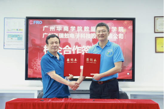 威廉希尔中文网站数据科学学院与广州飞瑞敖电子科技股份有限公司举行校企合作签约仪式,赖庆副院长与广州飞瑞敖总裁梅仲豪代表双方完成了签约仪式,双方在产教融合项目合作及“校外实践教学基地”建设等方面达成一致合作意见,共同期待能早日构建校企合作、人才共育、过程共管、责任共担的校企协同育人新格局。