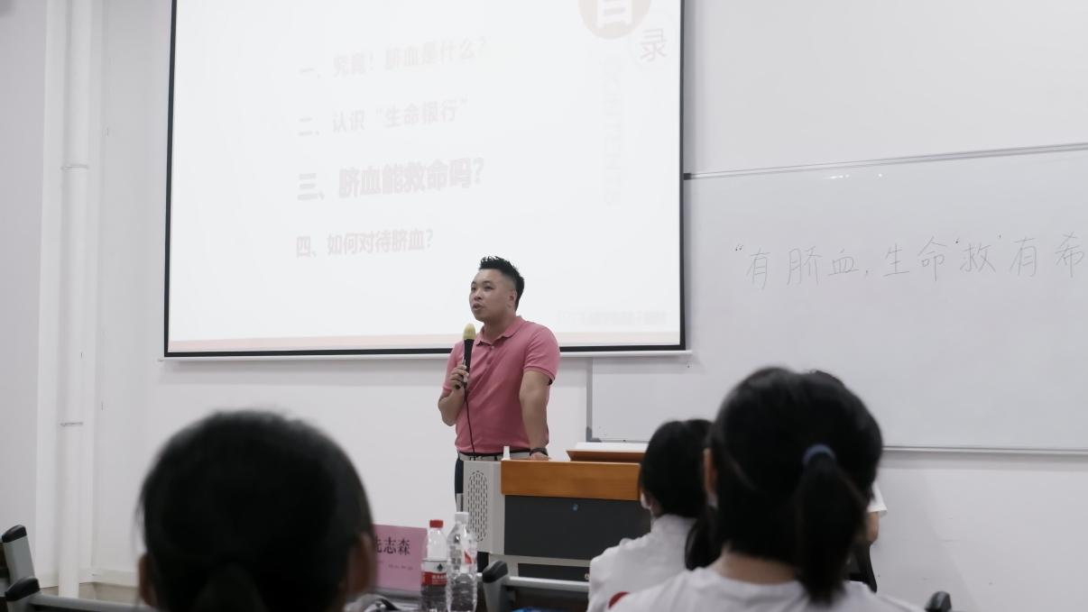 为向广大青年学生宣传脐带血相关知识,加深对脐带血捐献的了解和重视,减少脐带血浪费,进一步充实广东省脐带血造血干细胞公共库,让脐带血帮助到更多家庭,6月12日下午,校团委在四会校区开展“有脐血,生命‘救’有希望”脐带血科普讲座。本次讲座由广东省脐带血造血干细胞库的冼志森讲师主讲。