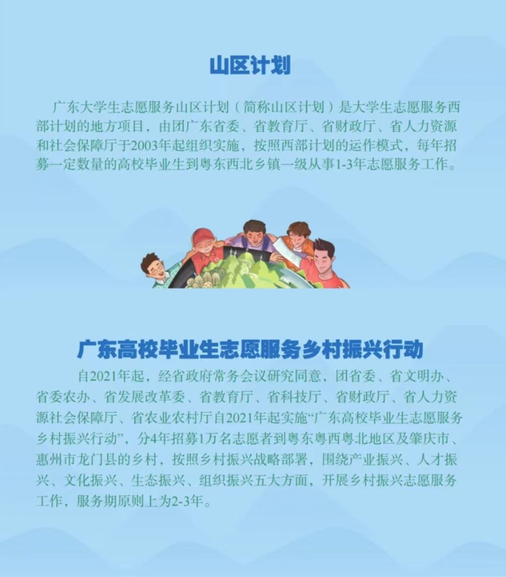 广东大学生志愿服务山区计划广东高校毕业生志愿服务乡村振兴行动是遵循我国“乡村振兴”战略,引导威廉希尔中文网站学生通过基层实践进一步坚定理想信念、锤炼意志品格、升华爱国情怀的实践育人工程的重要举措。
