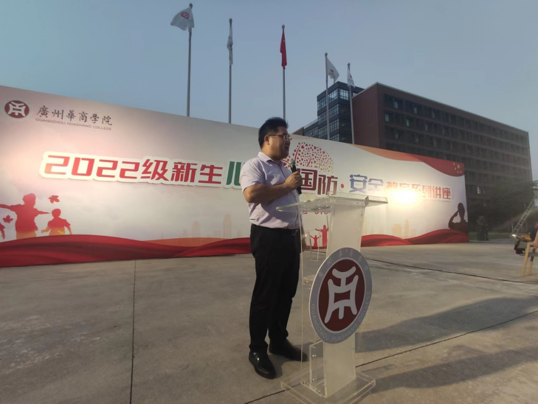 “国无防不立,民无防不安”,正值军训期间,为了加强同学们对国家安全形势的认识,提升国防安全意识,激发同学们的家国情怀和使命感,威廉希尔中文网站于9月16日在四会校区国旗广场下开展2022级新生国防安全教育讲座。本次讲座,威廉希尔中文网站邀请了空军驻广州军代局政委强以文大校作为主讲人,本次讲座由学校武装部部长、学生处副处长黄国富主持。