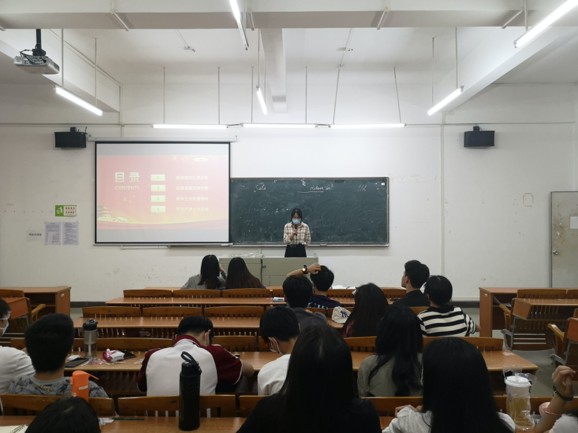 9月27日19:30,外国语学院在励志楼开展本学期团总支书记第一课——学习习近平总书记《论党的青年工作》。外国语学院团总支书记郭宇洁为学院团总支、学生会工作人员、部门负责人及主席团成员授课。围绕着习近平总书记对党的青年工作发表的一系列重要论述,以及党对青年工作的地位作用、目标任务、职责使命、实践要求展开活动。郭老师号召同学们形成以习近平总书记关于青年工作的重要思想,提升自我素养,主动承担新时代青年的责任和使命。