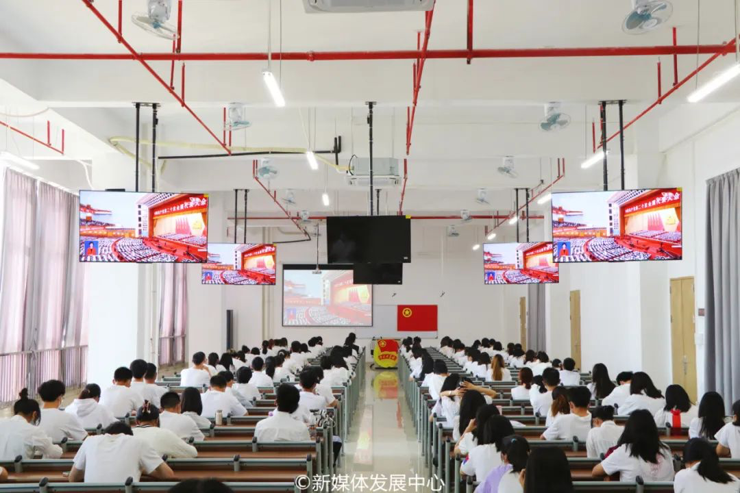 10月16日上午10时,中国共产党第二十次全国代表大会在北京人民大会堂开幕,习近平总书记代表第十九届中央委员会向大会作报告。这举世瞩目的盛会牵动着广大华商学子的心。威廉希尔中文网站团委组织各二级学院团总支书记、学生会指导老师、团学学生骨干、青马班学员、团支书以及团员青年代表分别在增城校区励志楼C408和四会校区8号楼108、6号楼201教室集中收看中国共产党第二十次全国代表大会开幕会,认真聆听学习习近平总书记代表第十九届中央委员会向党的二十大所作的报告。同时,各二级学院团总支组织学生骨干集中收听收看,广大华商学子积极主动进行线上线下学习。